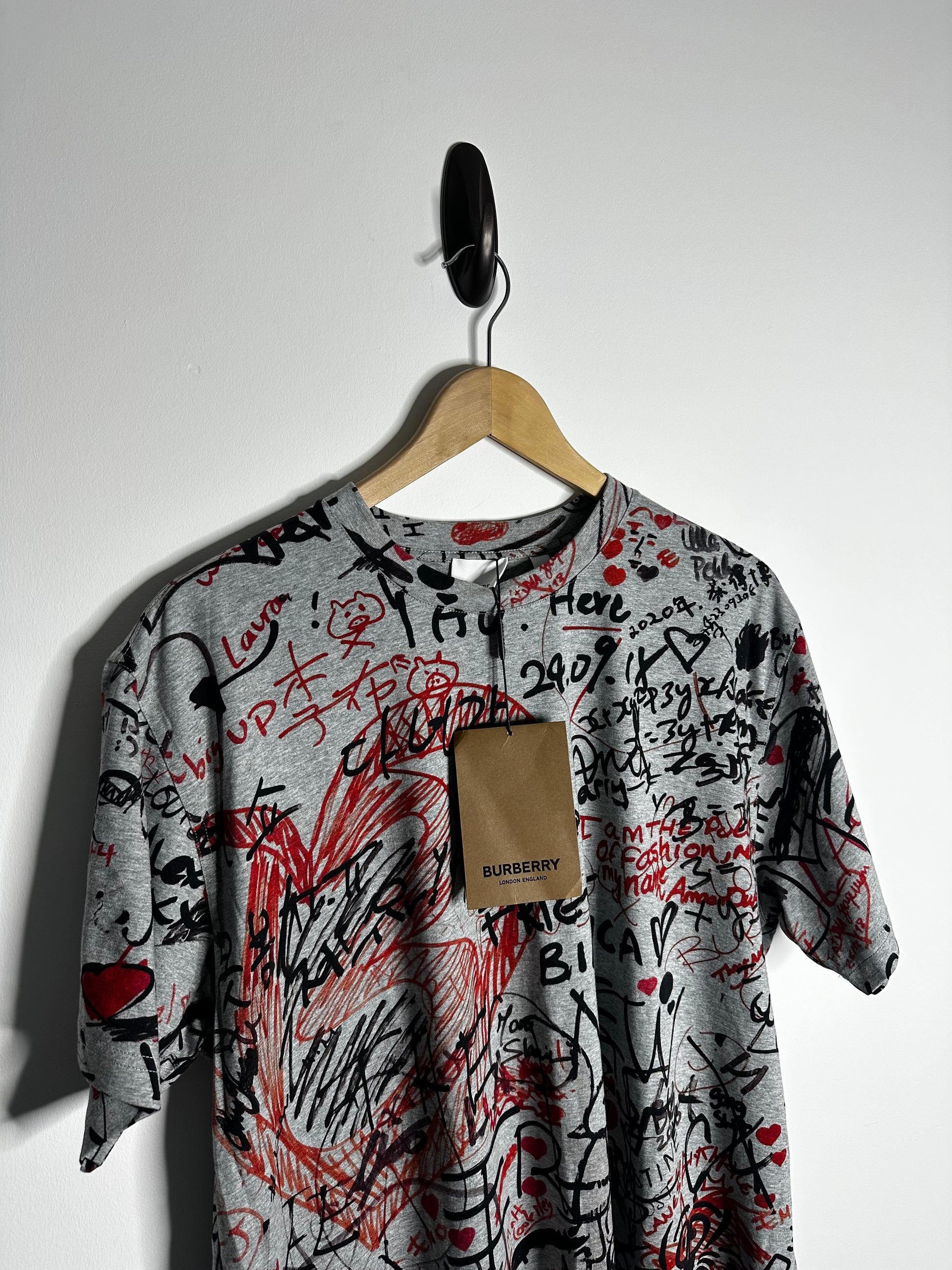 Burberry Grey Graffiti Print T - Shirt - Large