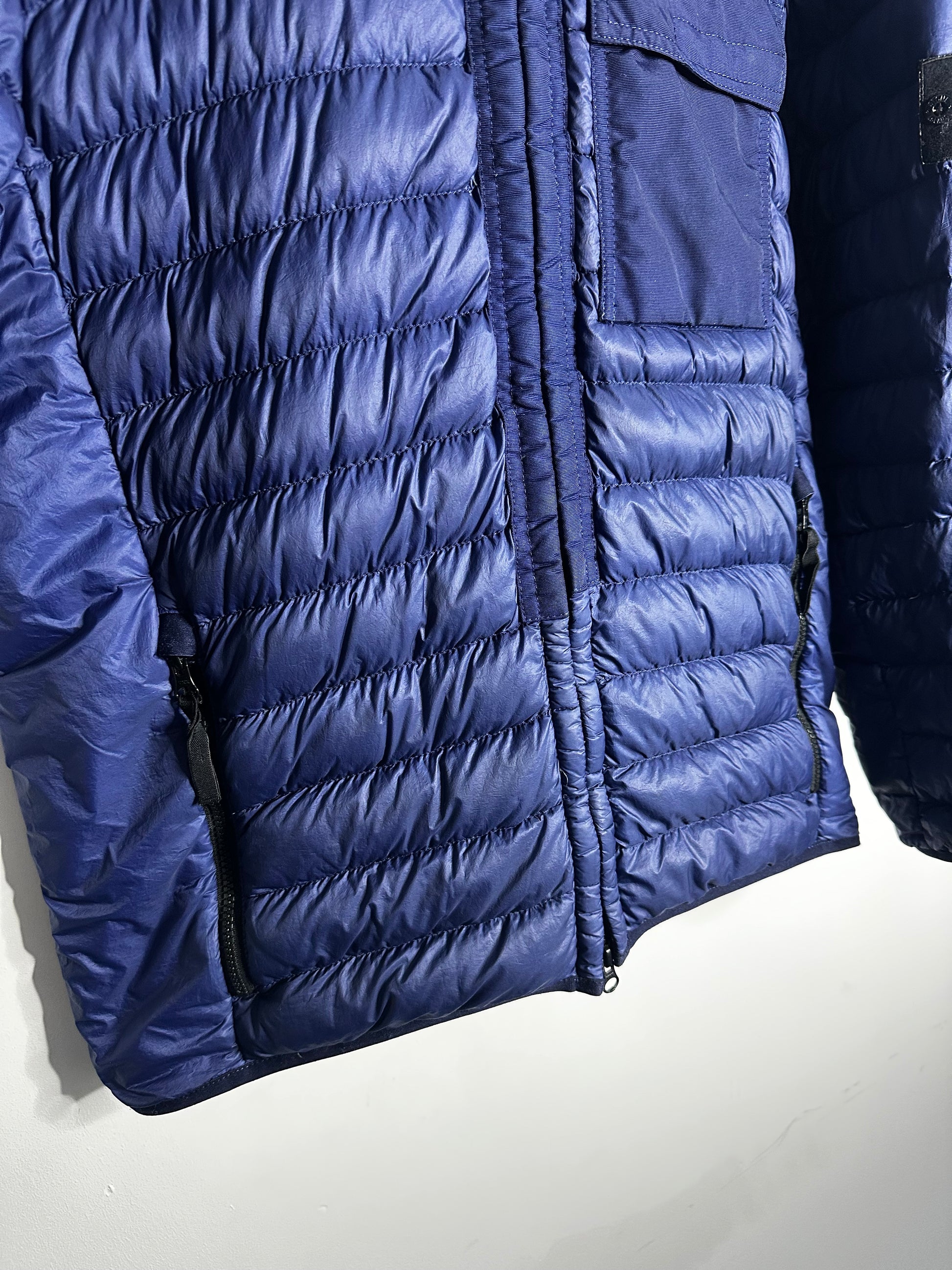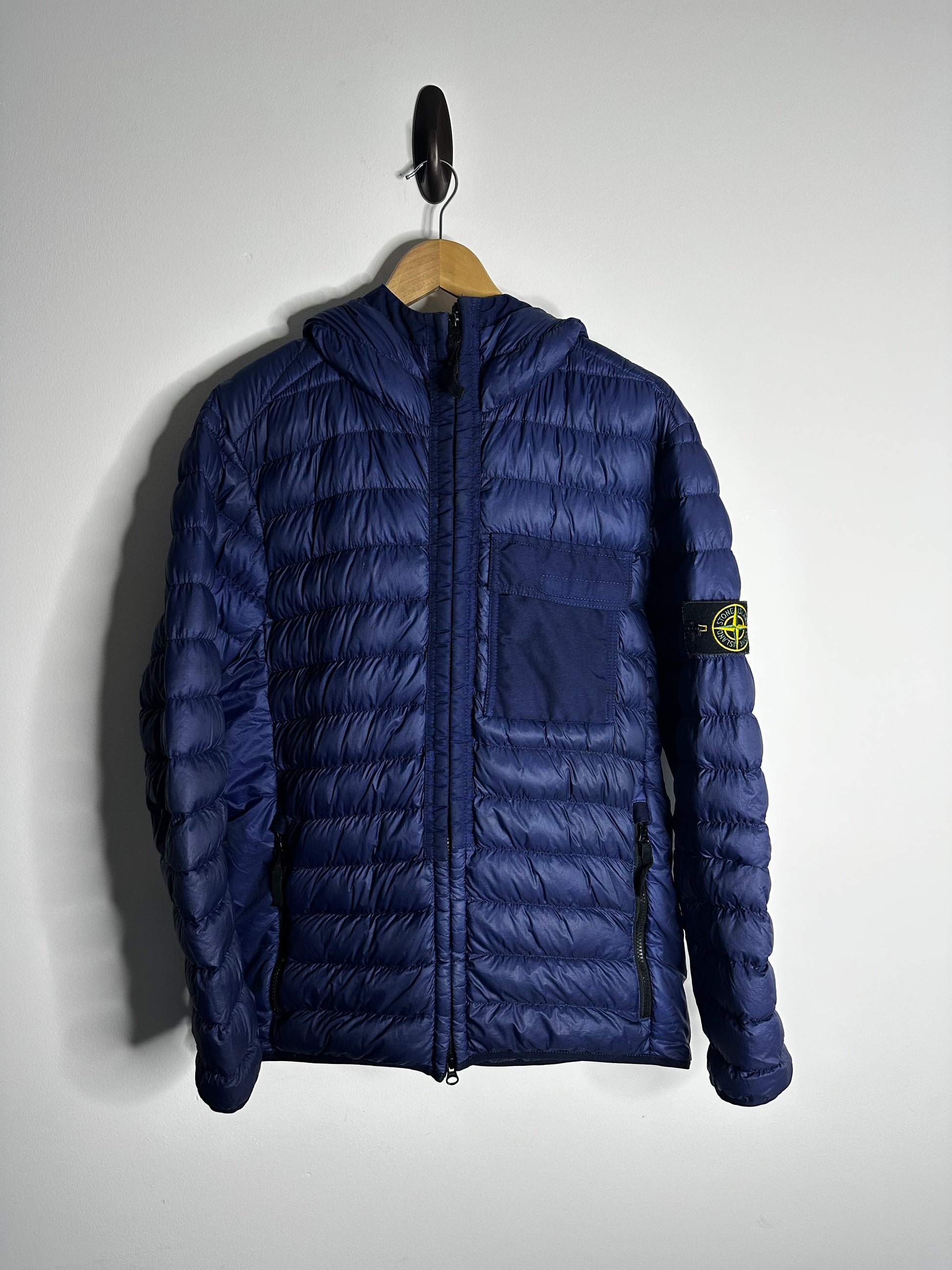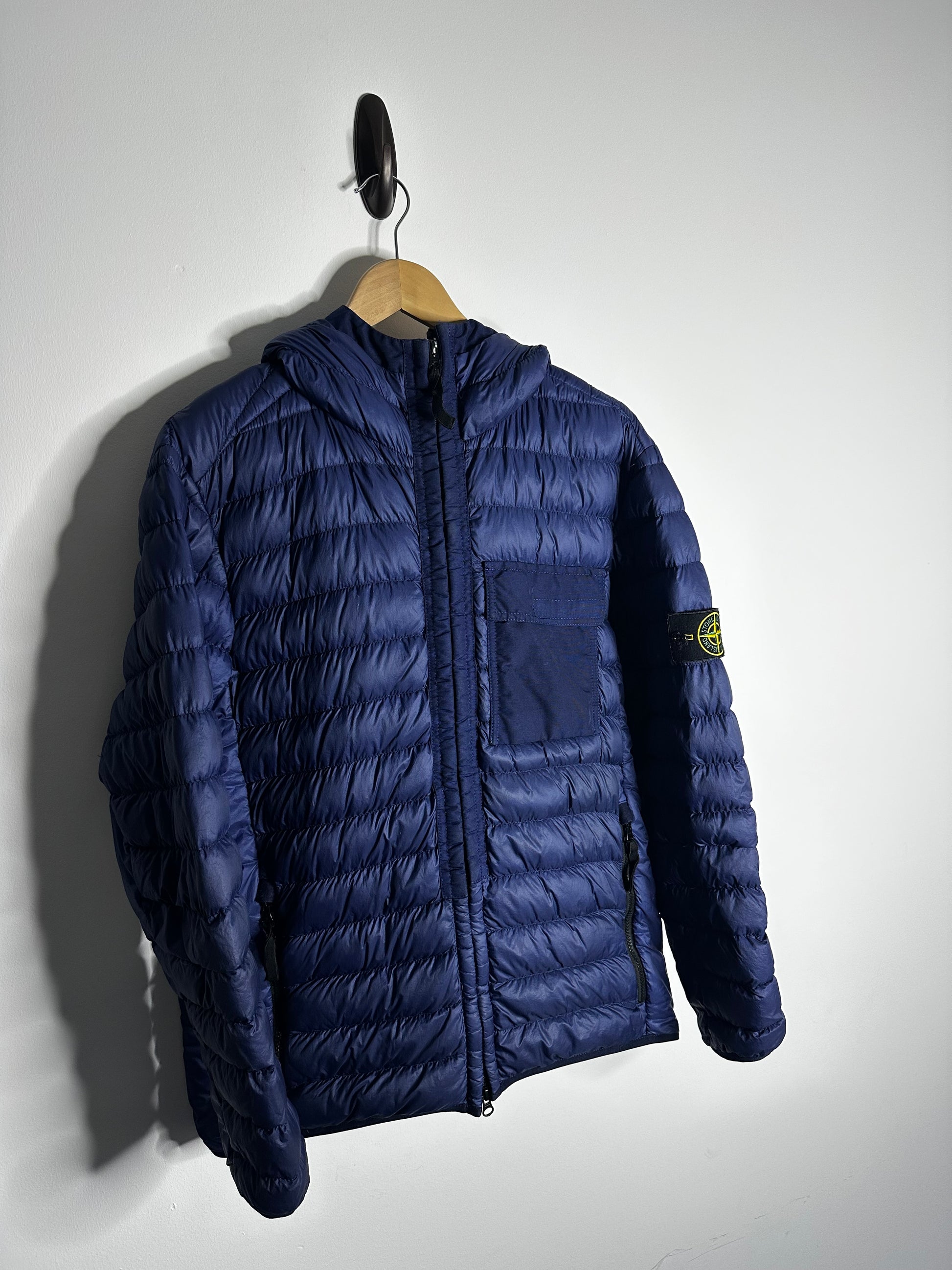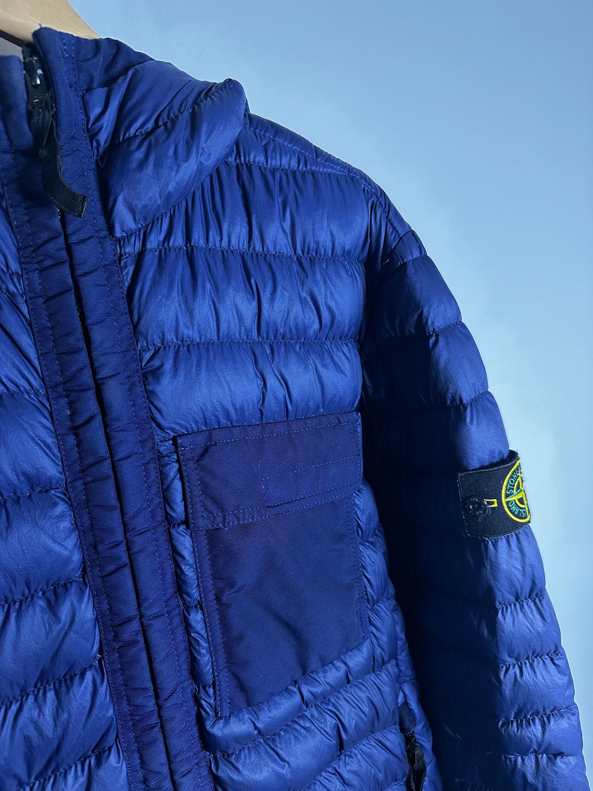 Stone Island Blue Garment Dyed Micro Yarn Down Hooded Jacket - Large